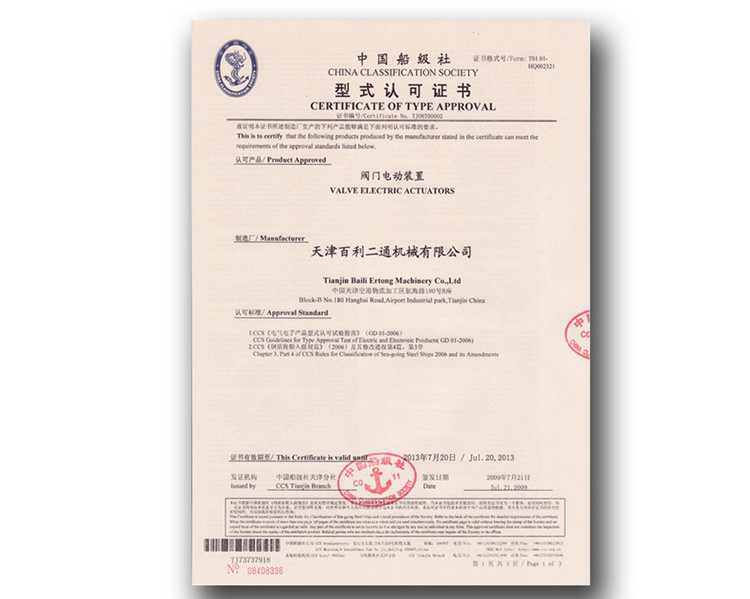 China CCS Classification Society Certificate of Type Approval