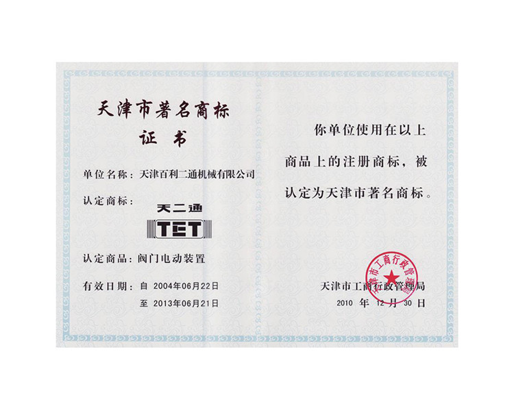 Tianjin Famous Trademark Certification